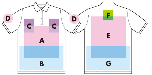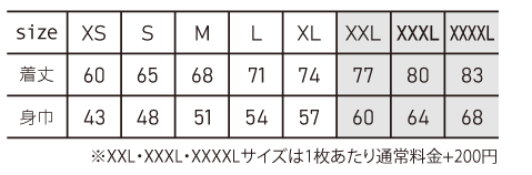 ※プリント場所を増やしたり色数を増やす場合は1箇所1色増えるごとに上記追加料金をたしてください。