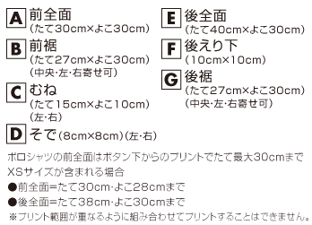 ※プリント場所を増やしたり色数を増やす場合は1箇所1色増えるごとに上記追加料金をたしてください。