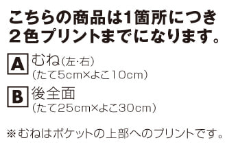 ※プリント場所を増やしたり色数を増やす場合は1箇所1色増えるごとに上記追加料金をたしてください。