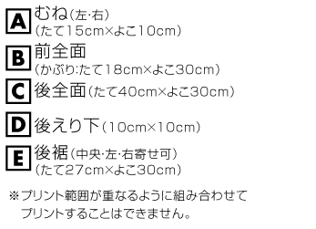 ※プリント場所を増やしたり色数を増やす場合は1箇所1色増えるごとに上記追加料金をたしてください。