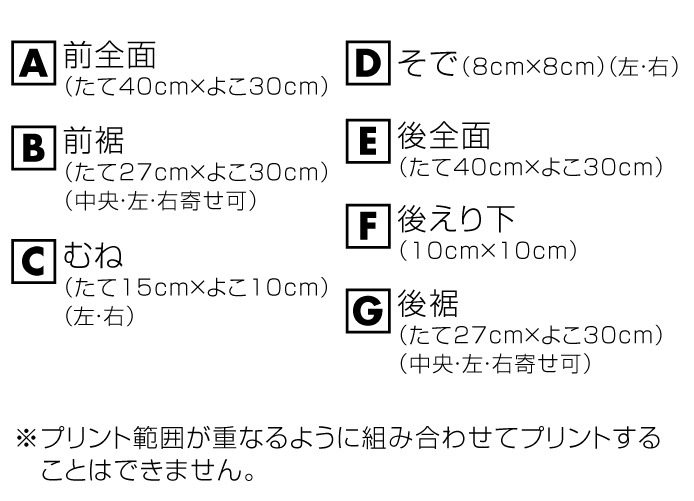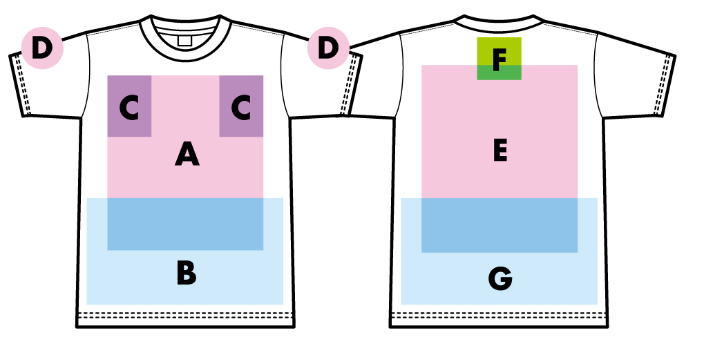 ※プリント場所を増やしたり色数を増やす場合は1箇所1色増えるごとに上記追加料金をたしてください。