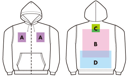 ※プリント場所を増やしたり色数を増やす場合は、1箇所1色ごとに上記追加料金を足してください。