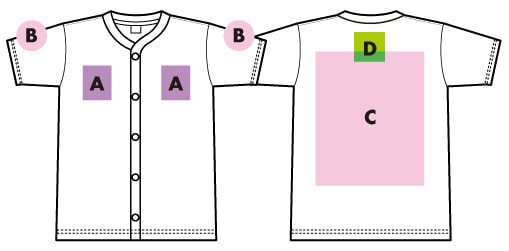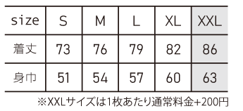 ※プリント場所を増やしたり色数を増やす場合は1箇所1色増えるごとに上記追加料金をたしてください。
