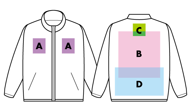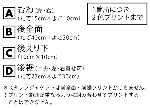 ※プリント場所を増やしたり色数を増やす場合は1箇所1色増えるごとに上記追加料金をたしてください。