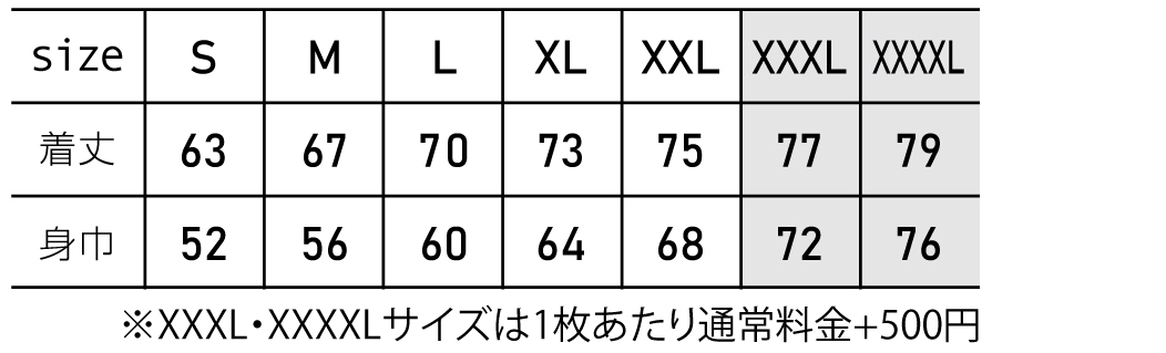 ※プリント場所を増やしたり色数を増やす場合は、1箇所1色ごとに上記追加料金を足してください。