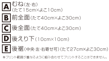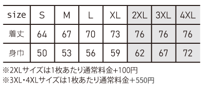※プリント場所を増やしたり色数を増やす場合は1箇所1色増えるごとに上記追加料金をたしてください。