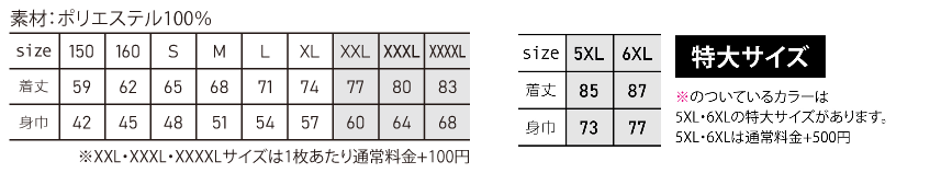 ※プリント場所を増やしたり色数を増やす場合は1箇所1色増えるごとに上記追加料金をたしてください。