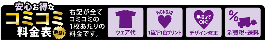 ※プリント場所を増やしたり色数を増やす場合は、1箇所1色ごとに上記追加料金を足してください。