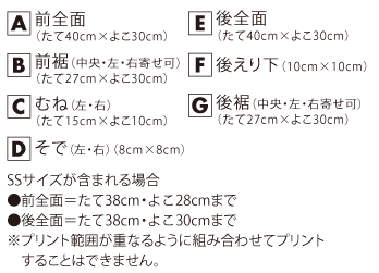 ※プリント場所を増やしたり色数を増やす場合は1箇所1色増えるごとに上記追加料金をたしてください。