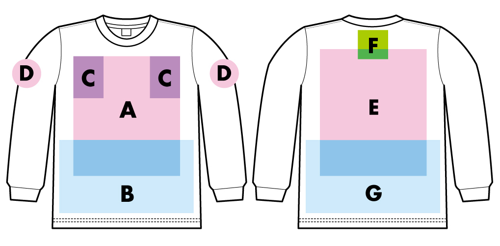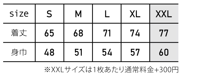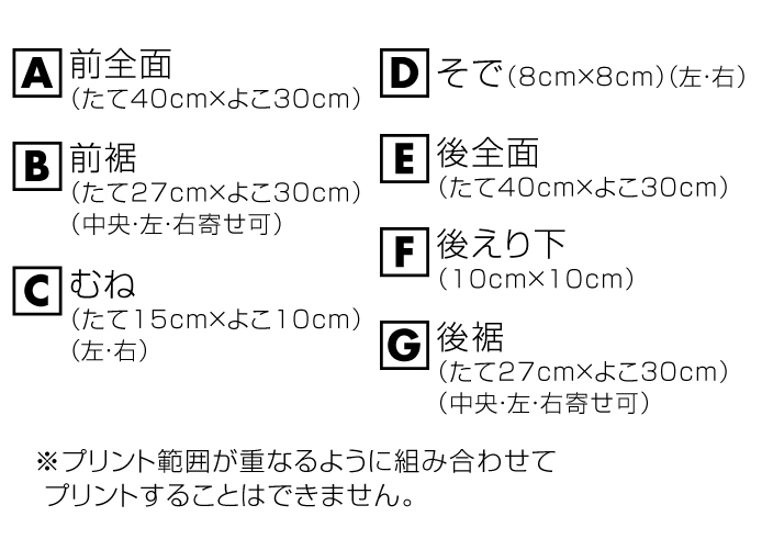 ※プリント場所を増やしたり色数を増やす場合は1箇所1色増えるごとに上記追加料金をたしてください。